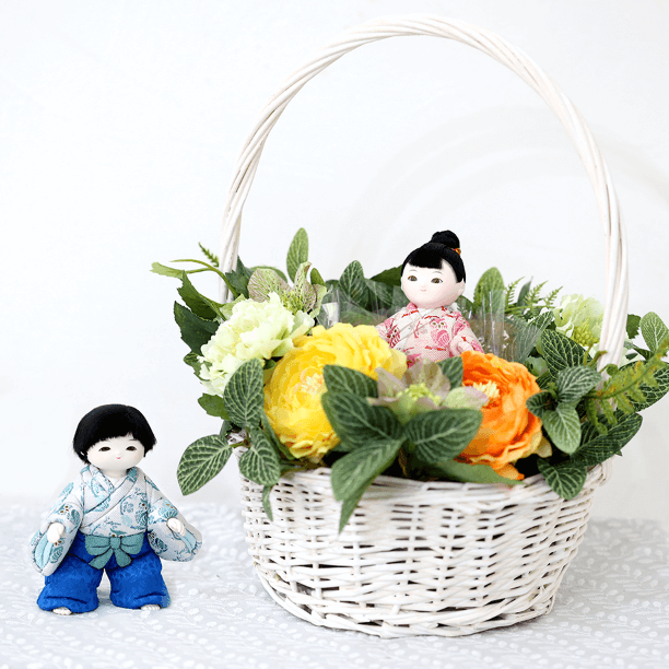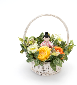 お人形を花かごにお入れすることもできます。