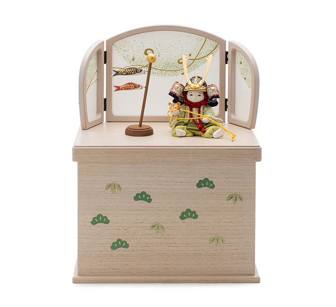 お人形や付属品を台の中にまとめて収納できるので出し入れが簡単なので、忙しいパパやママに特におすすめのポイントです。付属品としてミニサイズの鯉のぼり飾りがセットになっているため、縁起ものの五月人形と鯉のぼりを一緒に取り入れられる点も魅力です。