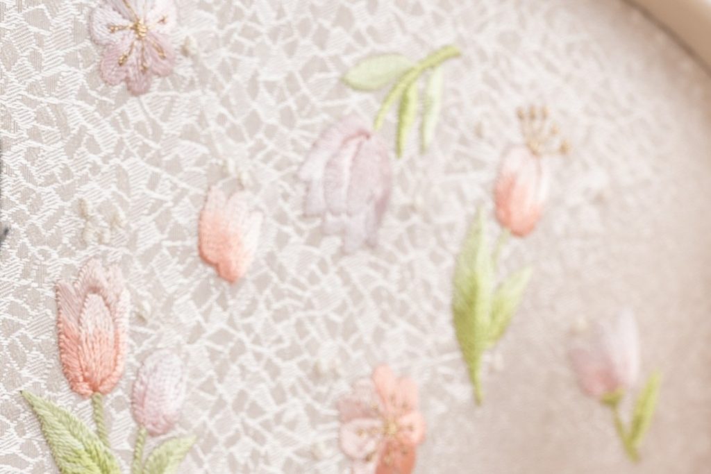 そんなチューリップをぷっくりかわいい刺繍で施しました。淡いピンクのグラデーションも細かい注目ポイント。