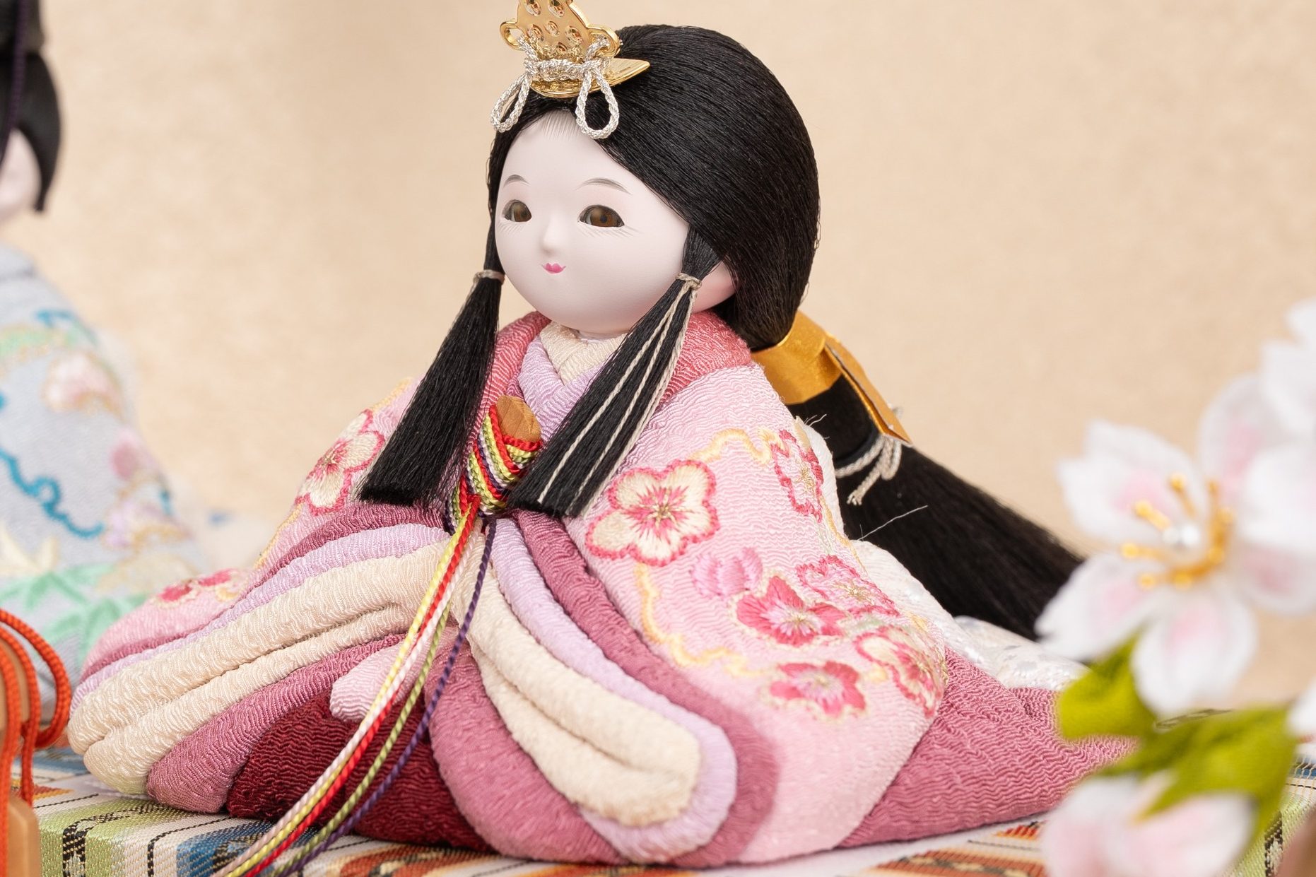 ふらここのデザイナーが高級感あふれるデザインとカラーで企画をし、名門の雛人形作家、清水 清鳳(しみず せいほう)が作り上げました。