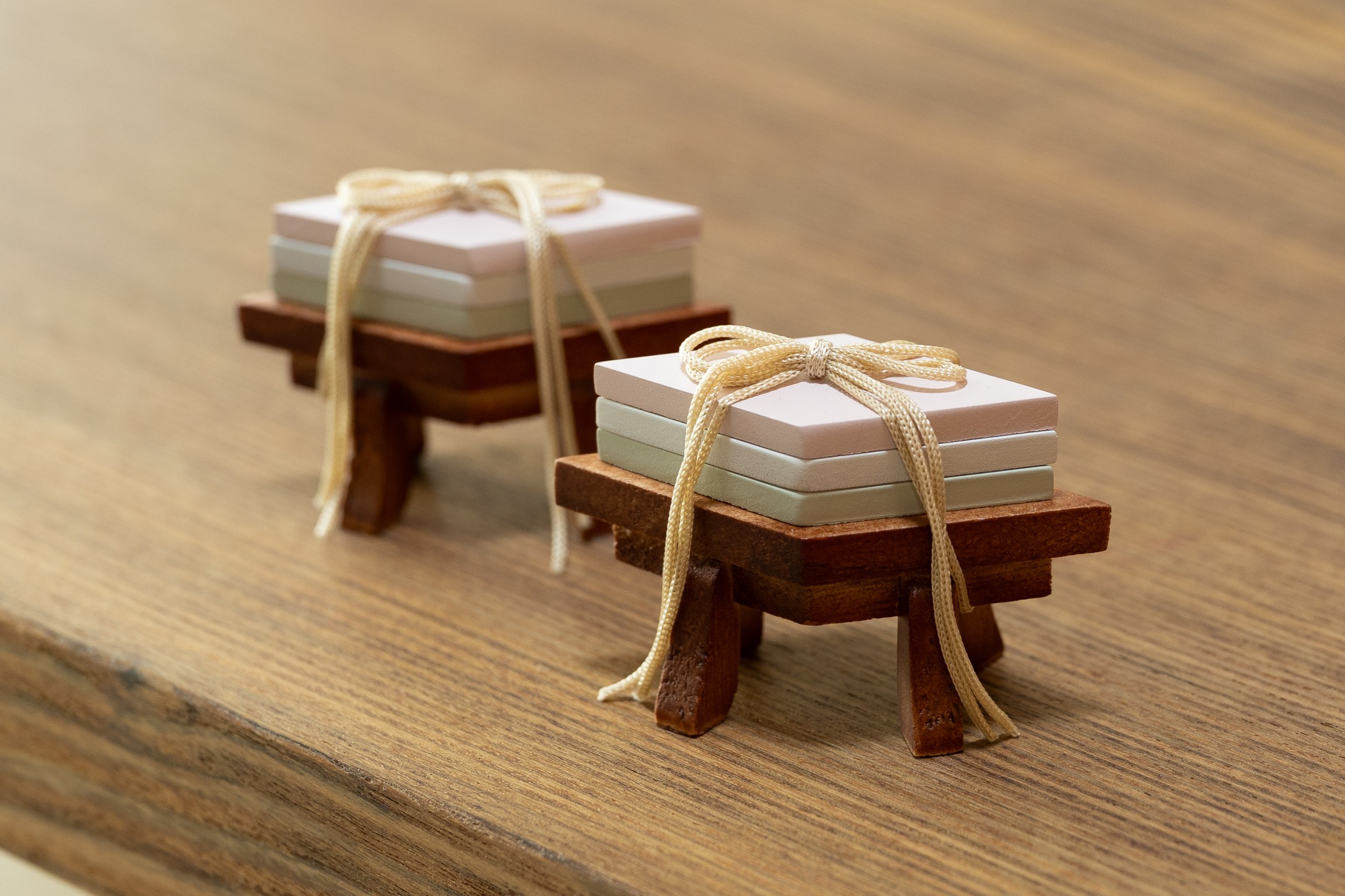 重厚感ある大きめサイズの菱餅は、現代的な淡い雰囲気でありながら、長く飾れるようなあたたかみのあるデザインです。