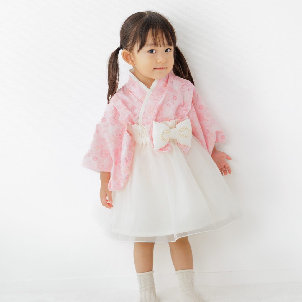 前に着いた大きい可愛いリボン、ふわふわのチュールスカートで記念のお写真がより華やかに♪