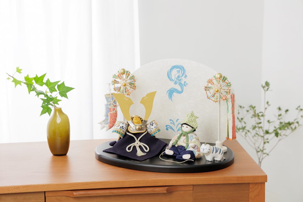 ふらここショールームでの五月人形展示期間は2026年3月からを予定していますが、それまでの雛人形展示期間でも、新作を中心とした一部五月人形をご覧いただけます。