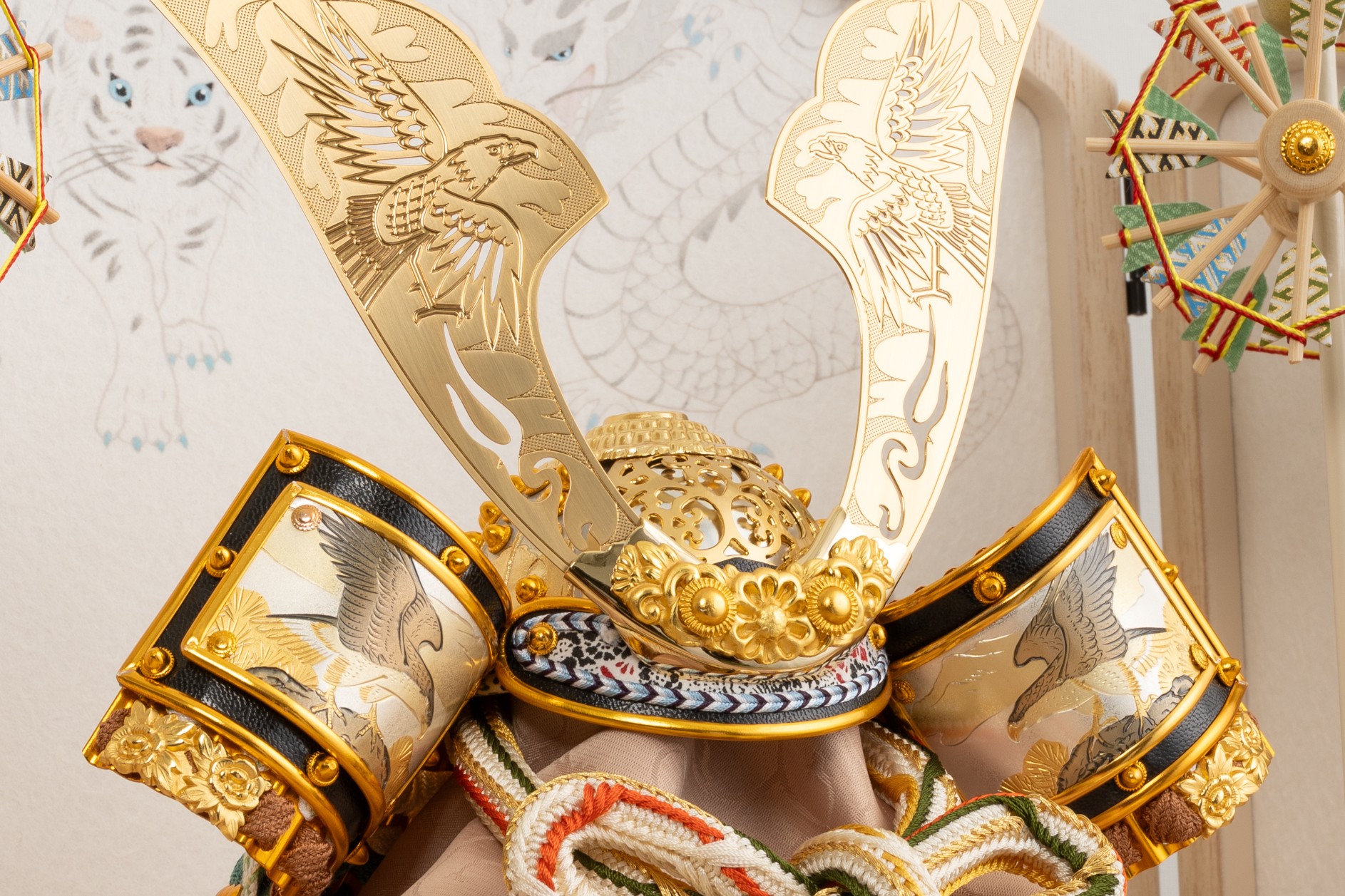 兜・鎧飾の場合は、鍬形(くわがた)などの細部の装飾にぜひ注目してみてください。コンパクトながらも精巧なつくりに、職人の丁寧な仕事を感じられるはずです。