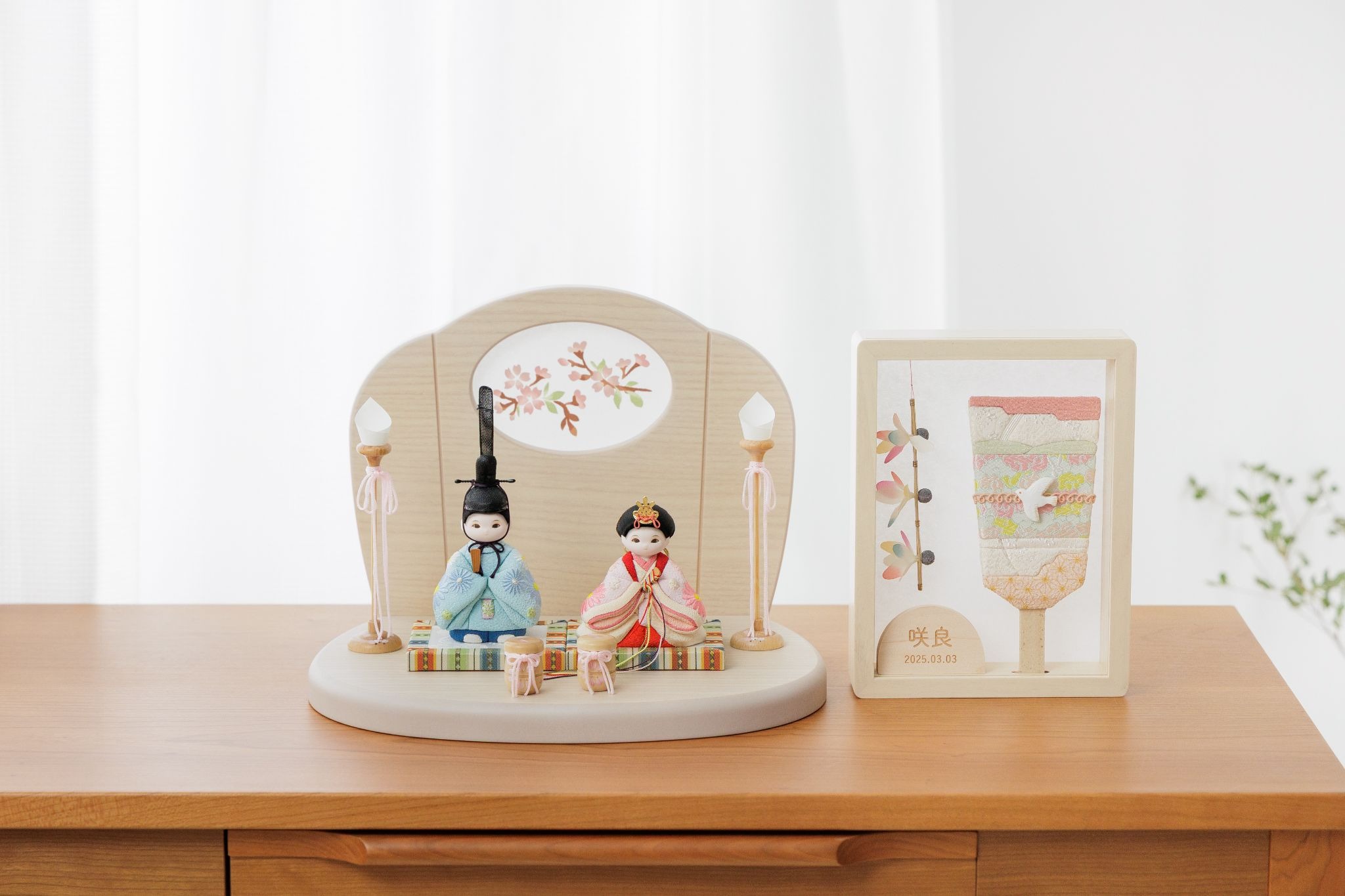 ふらここの平飾り(親王飾)なら、赤ちゃん顔の可愛いお顔やおしゃれなデザインで、毎年飾るのが楽しみに。