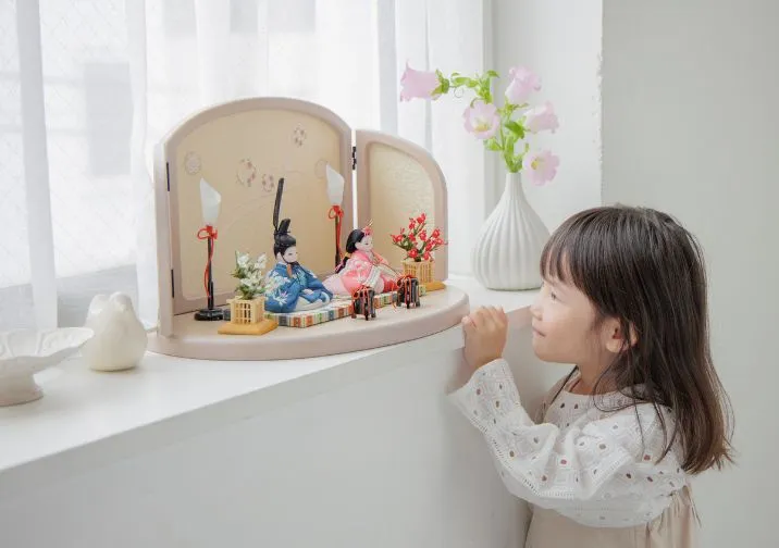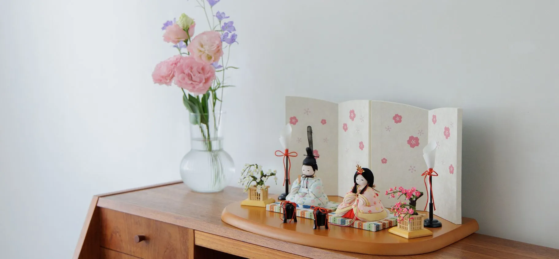 現代の住まいやインテリアに合わせてデザインされた、ふらここの雛人形。