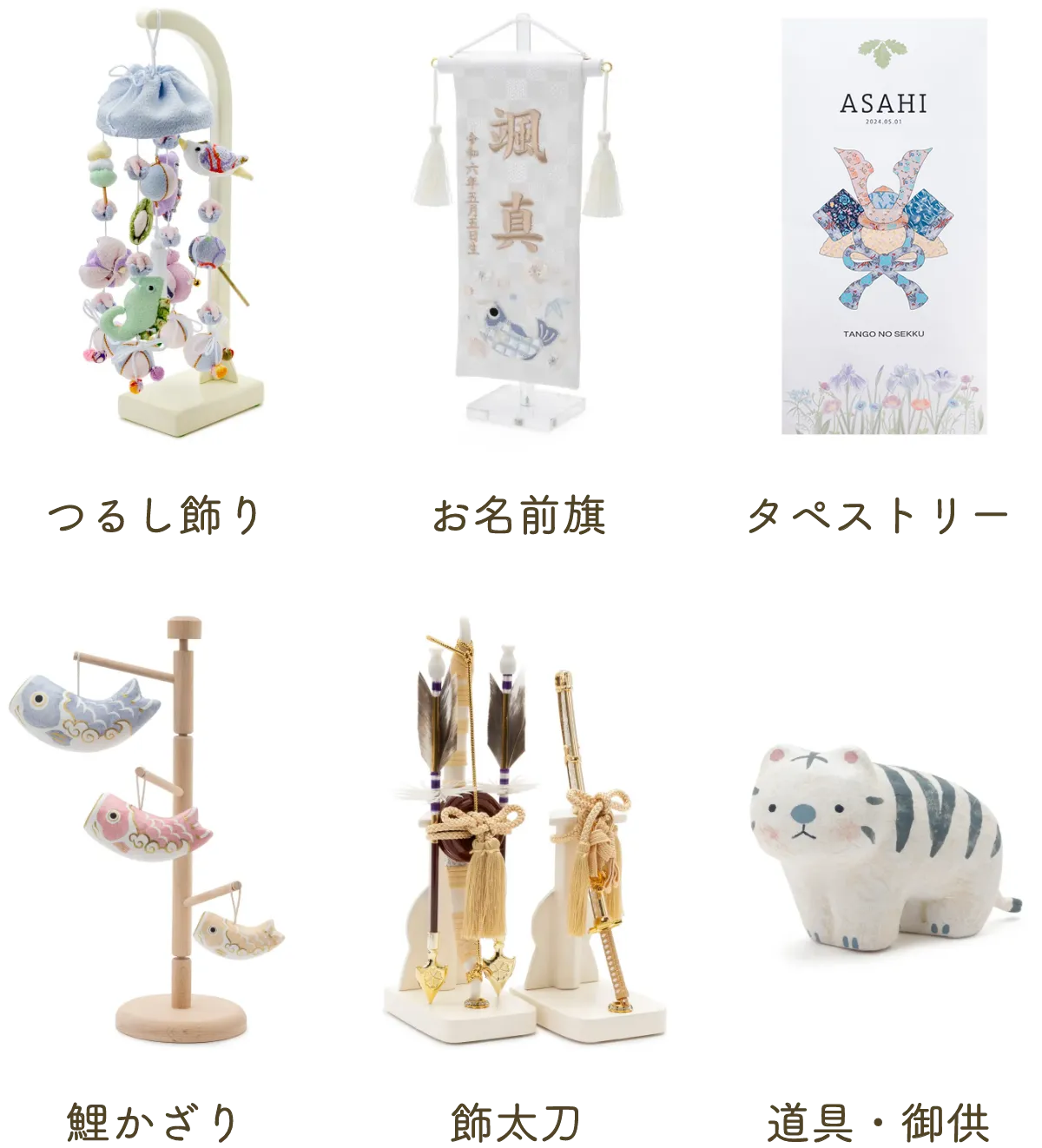 ふらここの五月人形に、わが子の幸せを想う“願い”をこめました。お子さまに届けたい願いから探す、ふらここならではの選び方をお楽しみください。