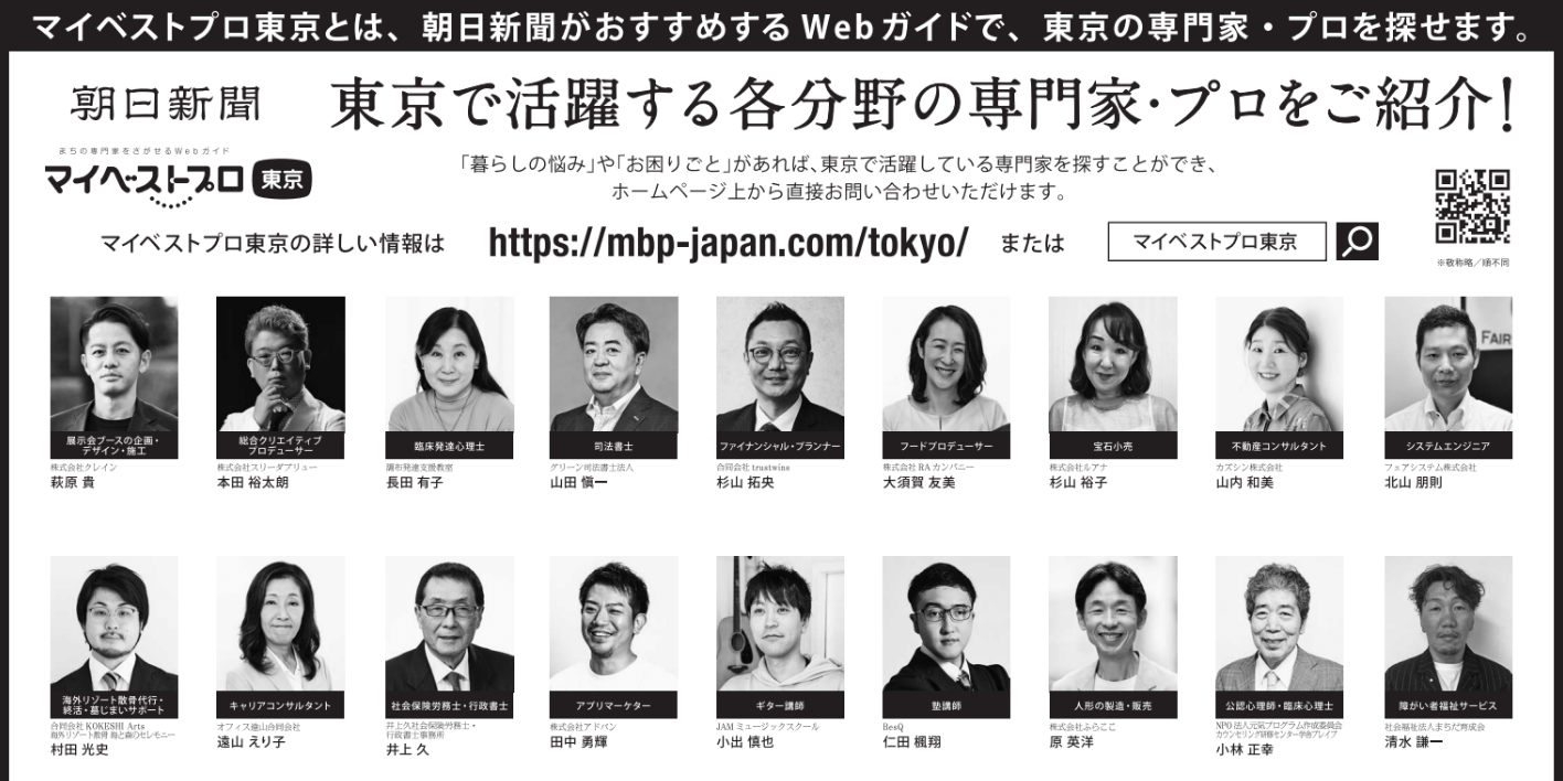 「マイベストプロ東京」は、東京都を拠点に活躍するさまざまな専門家が掲載されている、朝日新聞が運営するWebガイドです。