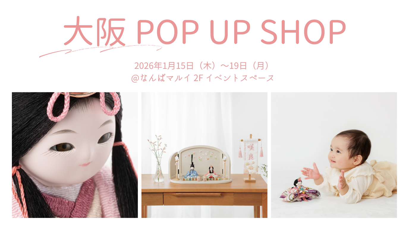 2026年1月15日(木)~19日(月)の期間限定で、なんばマルイ 2F イベントスペースにて、ふらここオリジナル雛人形のポップアップショップをオープンいたします。
